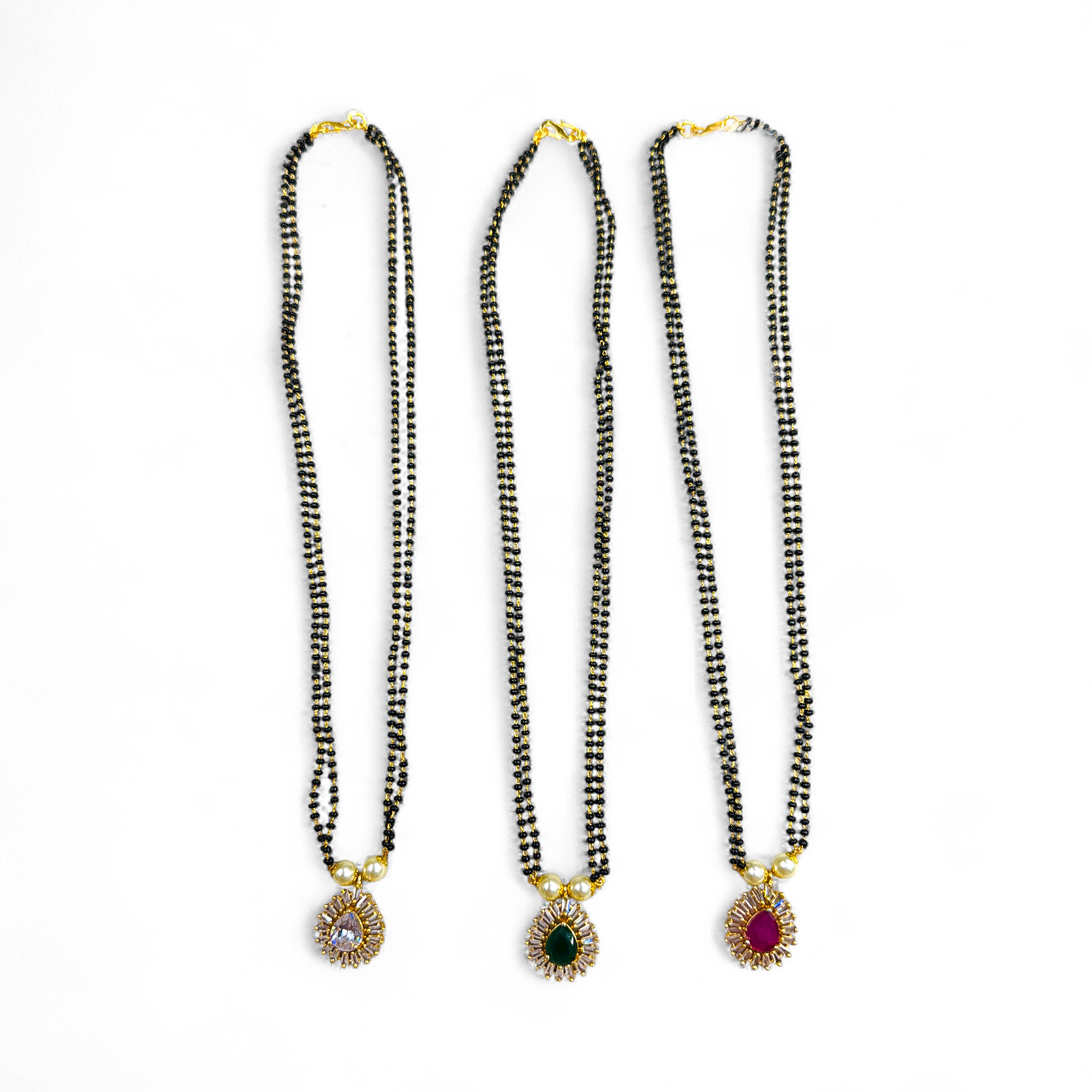24” fancy AD mangalsutra with delicate black beads and a minimal pendant—perfect for office wear and everyday elegance.