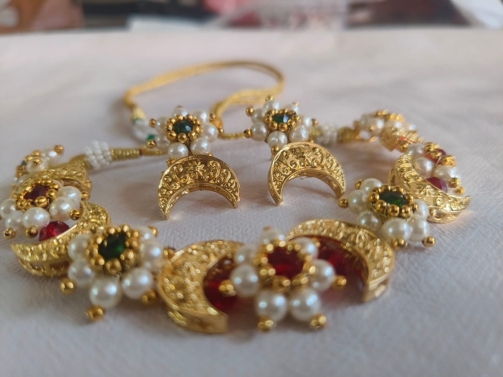 The Chandrakor Necklace Set is a premium artificial jewellery piece designed to reflect the beauty of traditional Maharashtrian culture with a touch of modern elegance. This necklace set is perfect for weddings, festivals, engagements, and special occasions.
