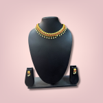 Elegant Golden Micro Polish Set Necklace Set with a classic square design and matching earrings. Perfect for wedding, Festive occasions and traditional wear