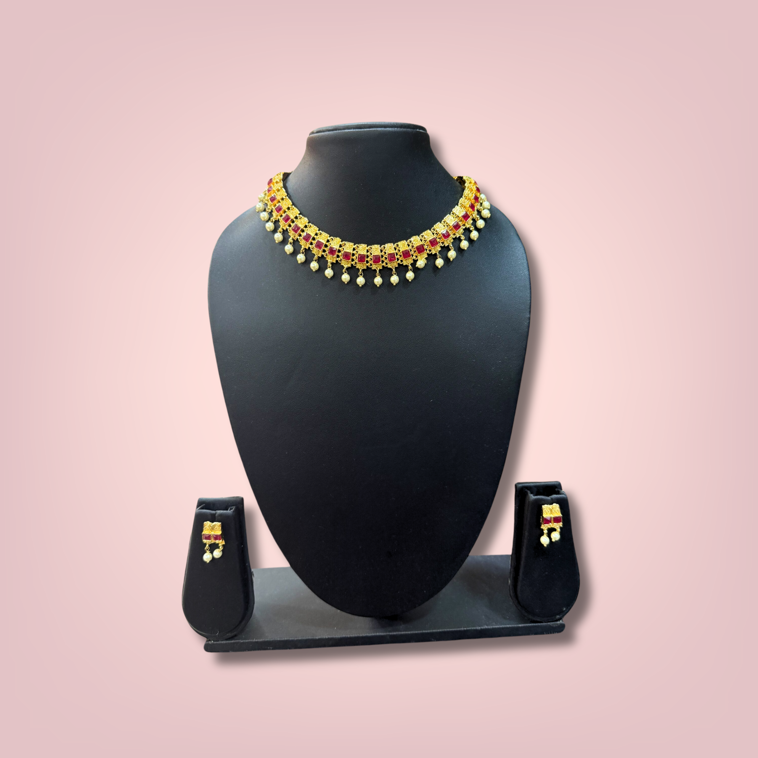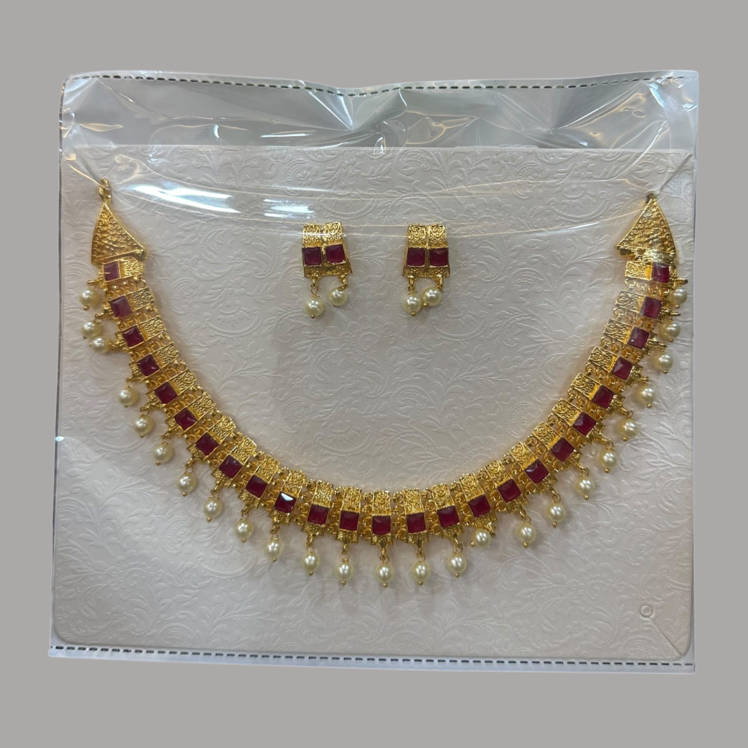 Golden Necklace Set Mico Polish (Square Design) – Premium Imitation Jewellery