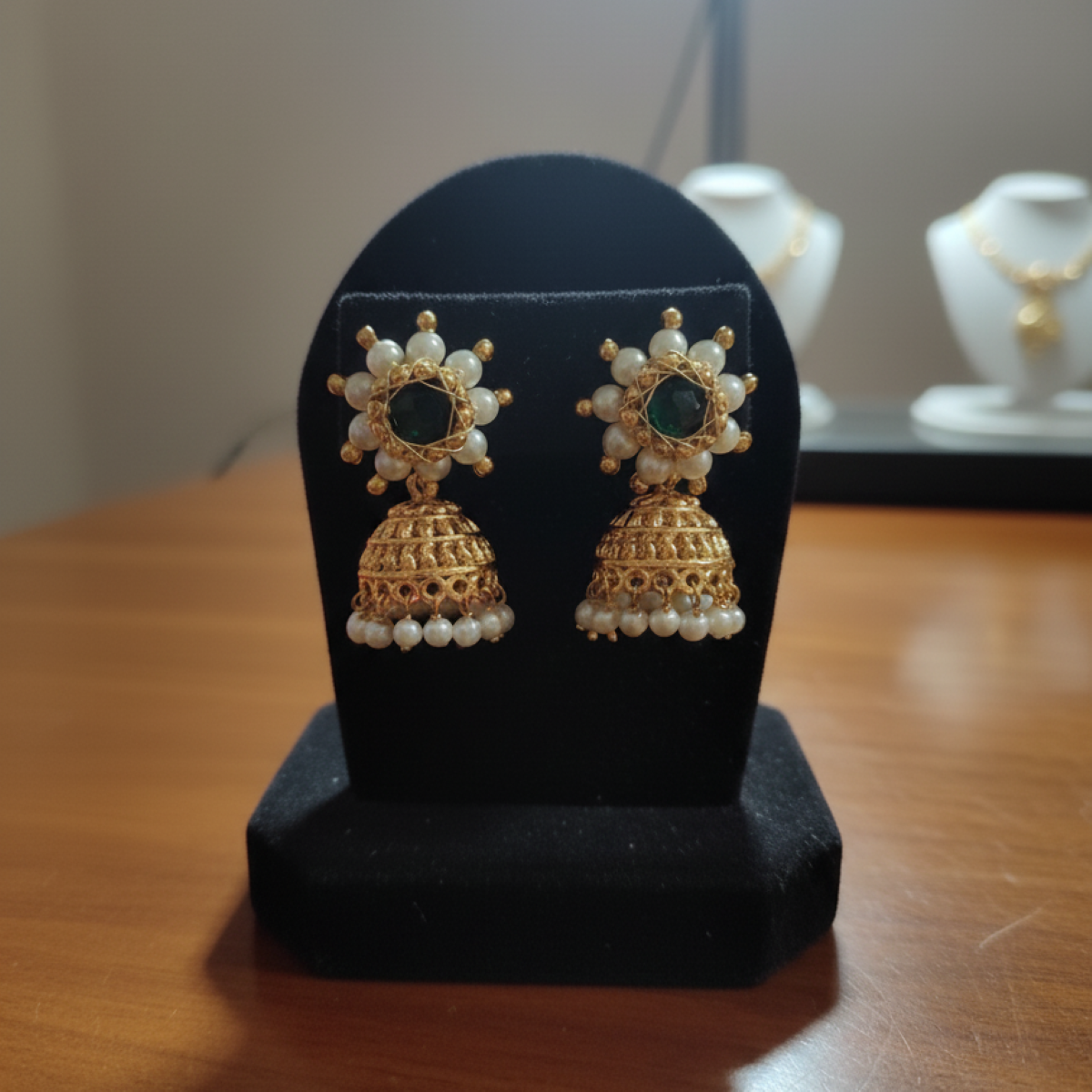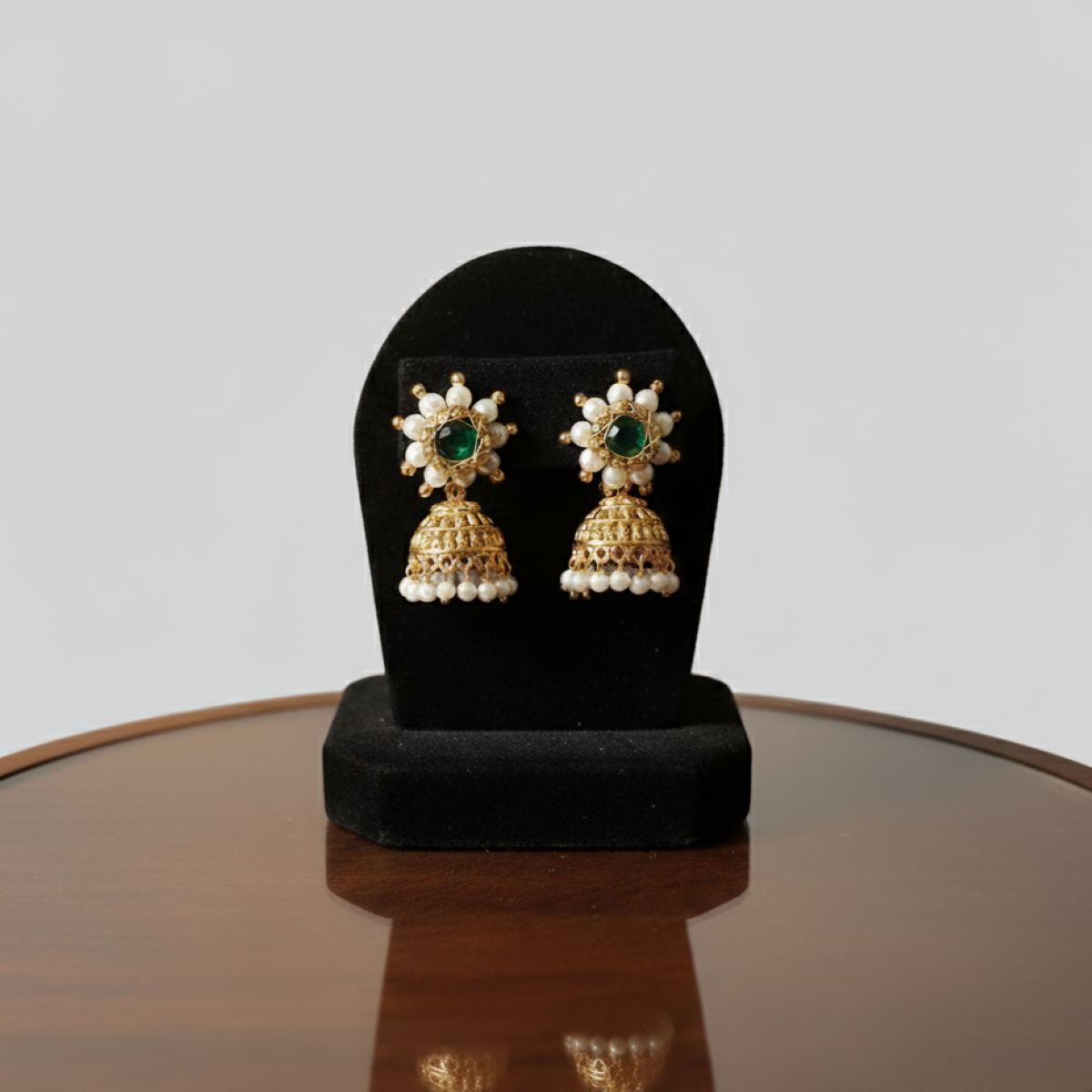 Handmade Pearl & Stone Jhumka Earrings – Traditional Imitation Jewellery